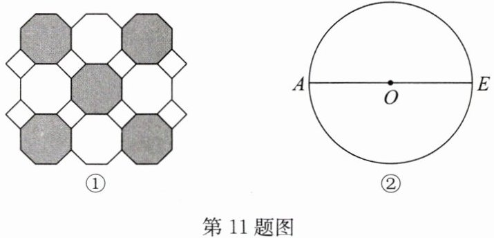 11. 图①是我们常见的地砖上的图案,其中包含了一种特殊的平面图形——正八边形.如图②,AE是$\odot O$的直径,用直尺和圆规作$\odot O$的内接正八边形ABCDEFGH.(不写作法,保留作图痕迹)