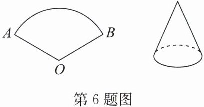 6. 如图,将弧长为$6\pi$,圆心角为$120^{\circ}的扇形纸片OAB$围成圆锥形纸帽,使扇形的两条半径$OA与OB$重合(接缝粘连部分忽略不计),求圆锥的底面圆半径及圆锥的侧面积.