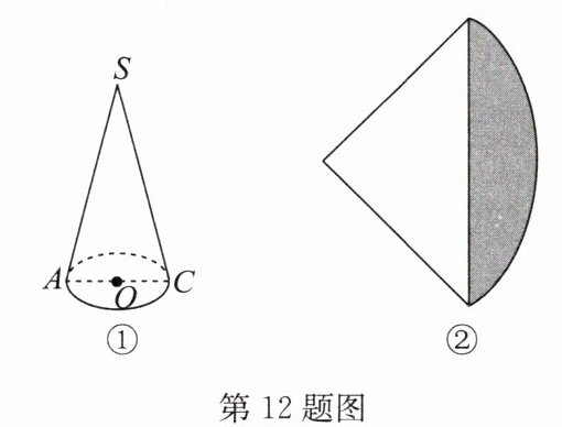12. 如图①,圆锥底面圆的半径为1,母线长为4,图②为其侧面展开图.