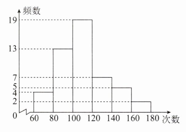 ∴该生跳绳成绩一定在100~120次范围内.