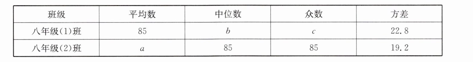 3. (长沙期末) 为了参加“市中小学生首届诗词大会”, 幸福中学八年级的两班学生进行预选, 其中班上前5名学生的成绩分别如下(单位: 分):