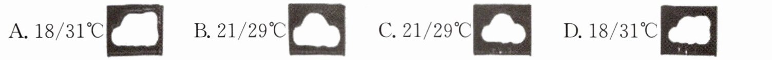 D 【点拨】根据题干可知,有几场阵雨,白天气温在 30度左右,夜间气温在 20 度以下,所以 D 项符合语境。故选 D。
