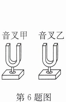 6. 如图,音叉甲、乙完全相同,甲发出440Hz的声音,原来静止的乙随之振动,乙也发出440Hz的声音,则(