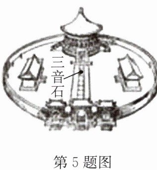 5. (2024·亭湖区二模)天坛公园有一个回音壁,回音壁的中心有个三音石,如图所示,站在上面拍手可能会听到三次回声,充分体现了我国劳动人民的聪明才智.听到的第三次声音和原声相比发生变化的是(