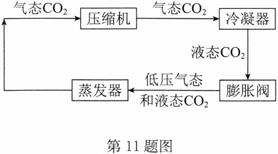 11. 国家速滑馆在冬奥会历史上首次采用“二氧化碳跨临界直冷制冰”技术. 技术原理简化如图所示,下列说法正确的是(