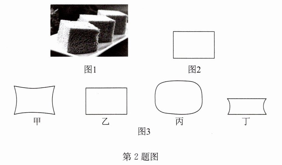 (2)将新鲜的豆腐切成长方块(如图2所示)放入冰箱冷冻室,一天后取出冻豆腐块,如图3所示的四幅图中,比较接近冻豆腐块形状的是