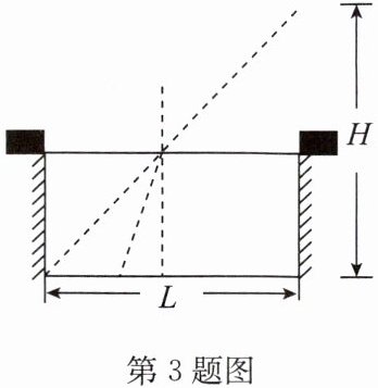 3. 如图所示,水池的宽度为L,在水池右侧距离池底高度H处有一激光束,水池内无水时恰好在水池的左下角产生一个光斑。已知L= H,现向水池内注水,水面匀速上升,则光斑(