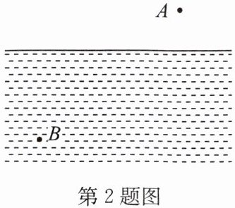 2. 如图所示,人眼在A处看见河里B处有一白色鹅卵石,现若使A处激光手电筒的激光光照在白色鹅卵石上,则激光束应对着(