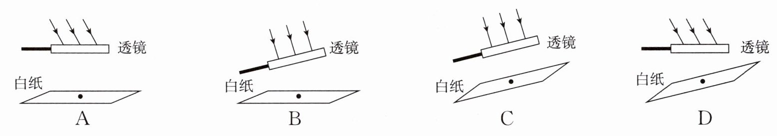 1. 小明利用太阳光测量凸透镜的焦距.下列操作最合理的是 (