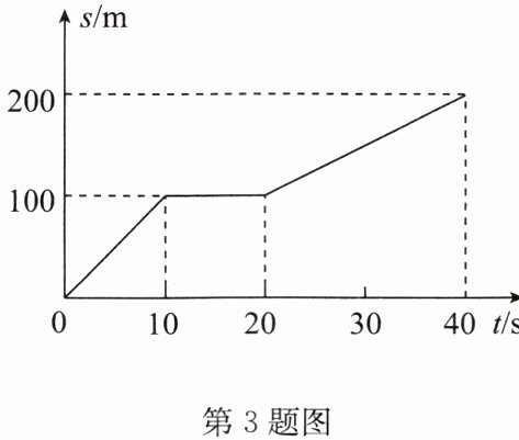 3. 如图所示是某物体在40s内沿直线运动的s-t图像. 分析图像信息, 前10s内物体通过的路程为