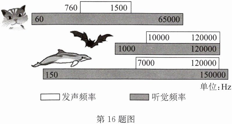 16.部分动物的发声频率和听觉频率如图所示,则下列说法正确的是(