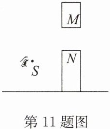 11. 画出人眼在点S处通过门板狭缝MN看到的室外范围.