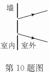 10. 如图所示,室内一盏电灯通过木板隔墙上的两个小洞,透出两条细小光束.请根据这两条光束的方向确定室内电灯的位置.