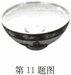 11. 如图所示,小明在一只空碗底部放了一枚硬币,当后退到某处时,眼睛刚好看不到硬币,另一位同学慢慢往碗中倒水,直到小明又能看到硬币,下列能够正确解释这种现象的光路图是 (
