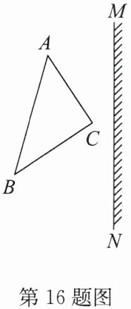 16. 请在图中画出三角形ABC在平面镜MN中所成的像.