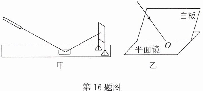 16. (2024·泰州期末)某班级同学探究光的反射规律,器材有:激光笔、平面镜、白板.