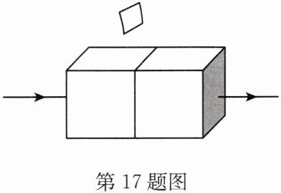 17. 如图所示是一个魔术箱,魔术箱顶部的中央有一条窄缝.使激光笔产生的激光束从左侧的小孔射入,从右侧小孔射出.将一块遮光板从顶部的窄缝插入箱中,可见遮光板并没有挡住激光束的传播.若魔术箱内部只由若干平面镜组成,根据这一奇怪的现象,小明对魔术箱内部的结构进行了猜想,下列猜想合理的是( )