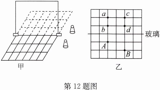 (3)如图乙所示,将棋子放在$A$处,观察者在$B$处,可以看到棋子的像在