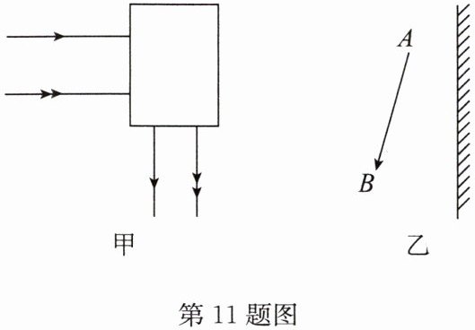 (2)在图乙中根据平面镜成像特点作出物体$AB在平面镜中所成的像A'B'$.