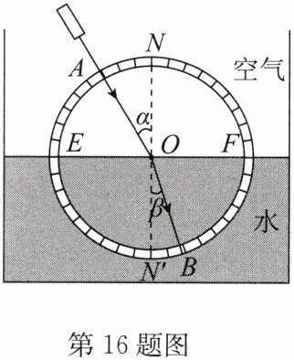 16. 某小组同学设计了如图所示的实验装置探究光的折射规律,其中竖直放置的光屏EF可绕其上ON所在直线方向前后折转.