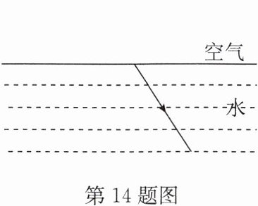 13. 如图所示是一束光从空气以一定角度射到水面某点后,在水中和空气中的径迹. 若这束光沿水中径迹从水中射到水面同一点,光路图可能是 (