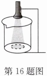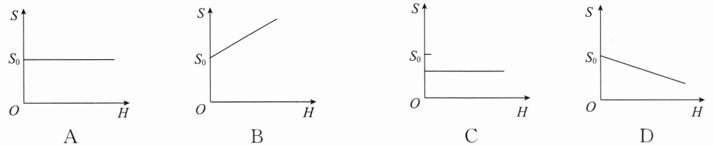 16. 如图所示,在烧杯正中心上方固定一手电筒光源,光线向下投射到空烧杯底部形成一个圆形光斑(图中虚线所示),此时圆形光斑的面积大小为$S_{0}$. 现在往烧杯中匀速注水,随着烧杯内液面高度H的增加,圆形光斑面积S变化情况描述正确的大致图像是 (