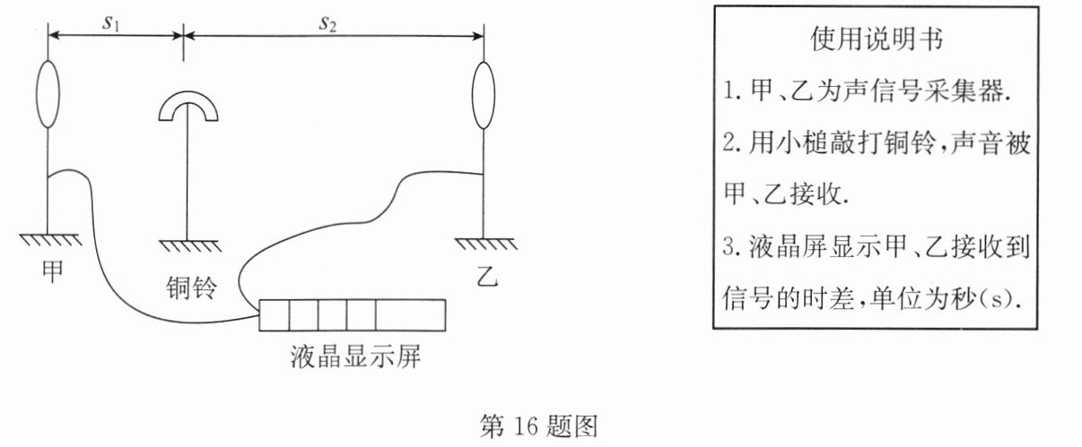 16. 如图所示为声速测量仪的实验装置及其使用说明书,根据使用说明书,回答下列问题.