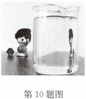 10. 如图所示,在水杯后放置一个人偶,透过水杯观察人偶,改变人偶与水杯的距离,下列关于看到的像的特点说法正确的是(