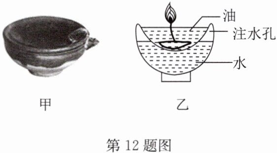 12. (2024·北京)图甲为我国古代的“节能灯”——“省油灯”,图乙为其剖面示意图. 向灯盏夹层内注水,有助于减慢油的蒸发,达到省油的目的. 关于“省油灯”减慢油蒸发的方法,下列说法正确的是 (