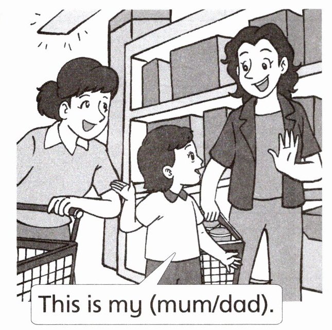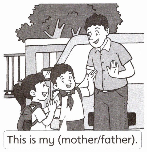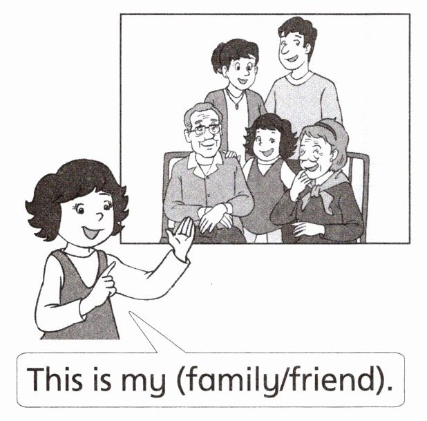这是一道英语阅读理解题目,考查学生对家庭成员称呼的掌握情况,以及根据图片内容选择正确词汇的能力。解题方法是根据图片中人物的关系,结合题目所给的词汇选项,圈出正确的单词。