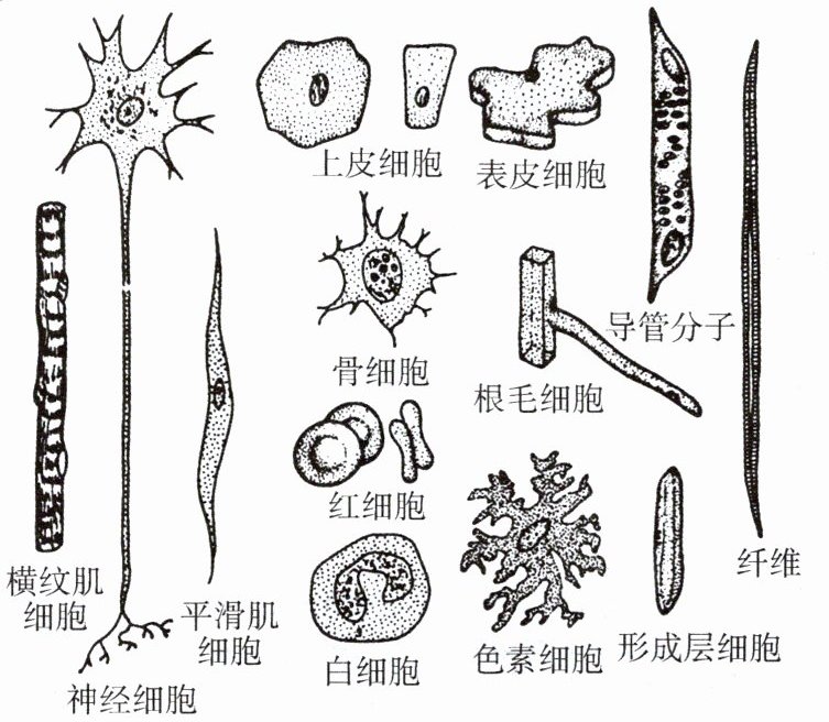 (3) 神经细胞可能和调节生命活动有关;表皮细胞可能和保护体内结构有关。