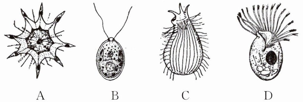 8. (单选题)下列是科学家绘制的几种单细胞生物示意图。根据已有知识可推断,其中属于衣藻的是( )