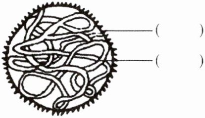 (1) 病毒虽然没有细胞结构,但也是一类结构非常简单的生物。在图中按标示填写其主要结构的名称。