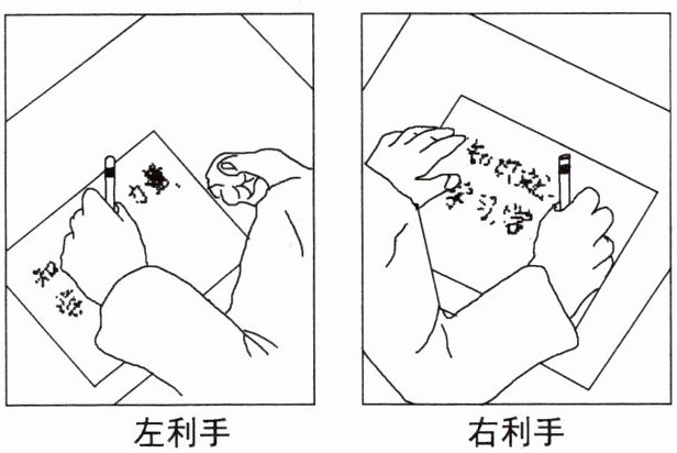 1. 在我们熟悉的人中,有的习惯用左手写字,也就是所谓的左利手,有的习惯用右手写字,也就是所谓的右利手(如下图所示)。请回答下列有关问题。