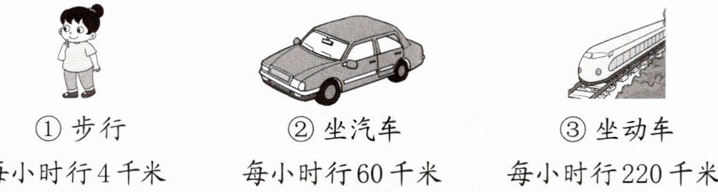 ③坐动车 每小时行220千米