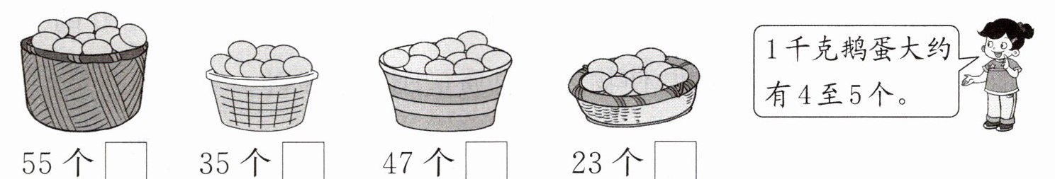 3. 王阿姨买了 8 千克鹅蛋。下面哪一筐最有可能是她买的?请在□里画“√”。