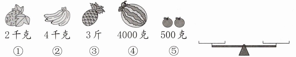 2. 怎样放下面的水果才能使天平处于平衡状态?把序号填在()里。