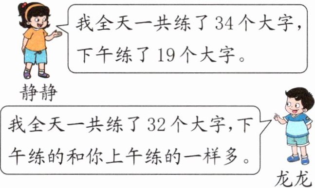 龙龙 我全天一共练了32个大字,下午练的和你上午练的一样多。