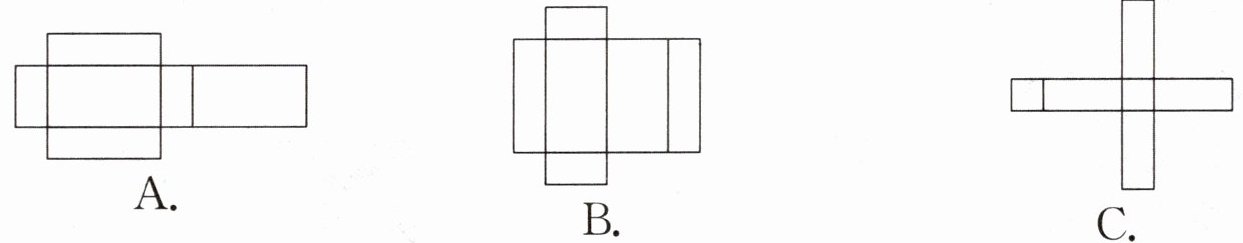 2. 如右上图所示为一个长方体展开图中的三个面,请画出其余三个面,使它成为一个完整的长方体展开图。