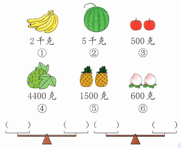 6.(思维过程)下面的水果怎样放能使两台天平都平衡?(填序号)