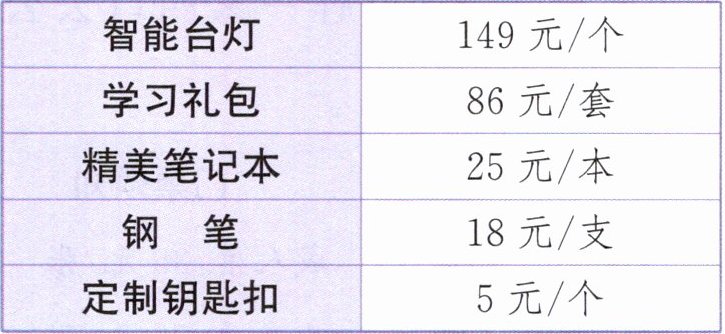 5. 某班级组织期末表彰活动,计划奖励 “学习之星”1 人、“进步之星”6 人、“品德之星”10 人,购买奖品的总预算不超过 500 元,同类型奖项的奖品相同。请你从下面几种商品中挑选 3 种分别作为三类奖项的奖品。