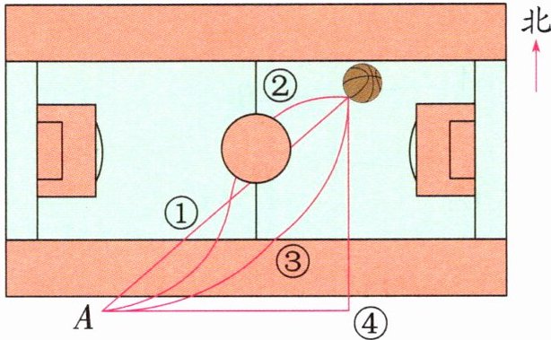 4. (应用意识)如图,一个长方形篮球场上有1个篮球。