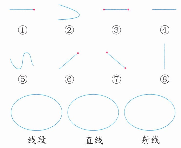 2.线段:③⑦ 直线:④⑧ 射线:①⑥