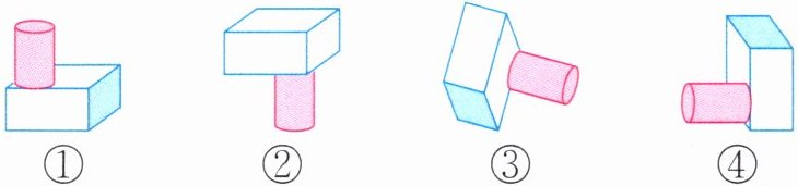 6. ③与其他三组不同 因为通过比较涂色面与圆柱的位置可以发现,当四组物体的涂色面都在右面时(如题图①),①②④的圆柱都在长方体上面的左下角,只有③在长方体上面的左上角,所以③与其他三组不同(合理即可) 解析:可以任选两组进行对比,发现①与②相同,③与④不同,再比较①与③及②与③,可发现③与其他三组不同。