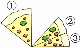 假设欢欢吃掉的是②,剩下的饼形成的角如图所示。由图可知,还剩下2个钝角、1个直角和3个锐角,与题目条件不符。
