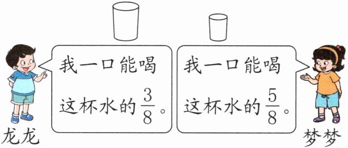 5.无法确定谁一口喝的水多 因为两个杯子的大小不一样 易错分析:易直接比较$\frac{3}{8}$和$\frac{5}{8}$