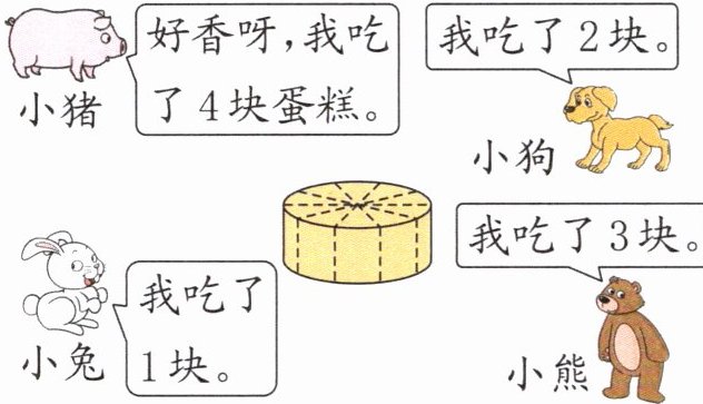 易错分析:要注意蛋糕被平均分成的块数和小动物们吃的块数。