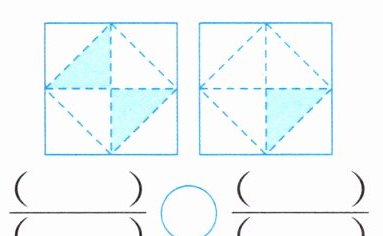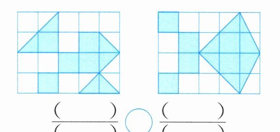 6. 先写出涂色部分占整个图形的几分之几,再比较这两个分数的大小。