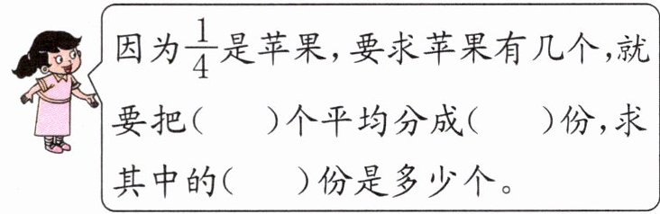 因为$\frac {1}{4}$是苹果,要求苹果有几个,就要把(