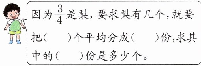 因为$\frac {3}{4}$是梨,要求梨有几个,就要把(